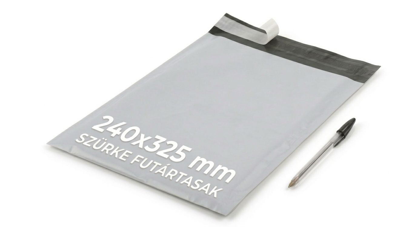 Futártasak (szürke) 240x325mm - 50 mikron - 1500 darab / karton - (14 Ft/db. +ÁFA)